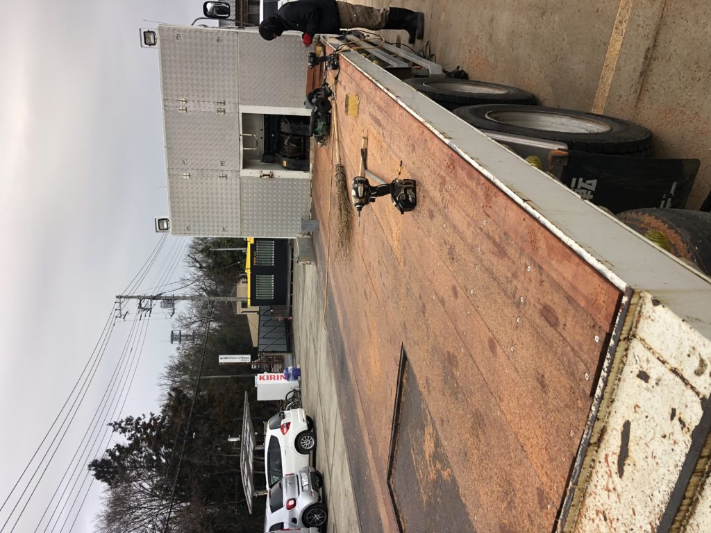 大型回送車の荷台部分の板が古くなってきたので、張替え作業を行いました。